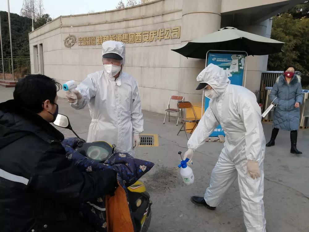 一機(jī)集團(tuán)對出入人員進(jìn)行體溫檢測;對各辦公場所、生產(chǎn)現(xiàn)場均利用消毒液進(jìn)行消毒。同時(shí)積極開展測溫儀、體溫計(jì)、消毒液、紫外線消毒燈、防護(hù)口罩等物資籌備,做好假期后生產(chǎn)啟動準(zhǔn)備。