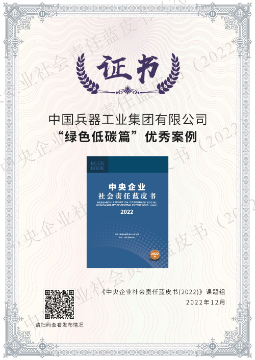 兵器工業(yè)集團綠色低碳案例入選《中央企業(yè)社會責(zé)任藍(lán)皮書(2022)》