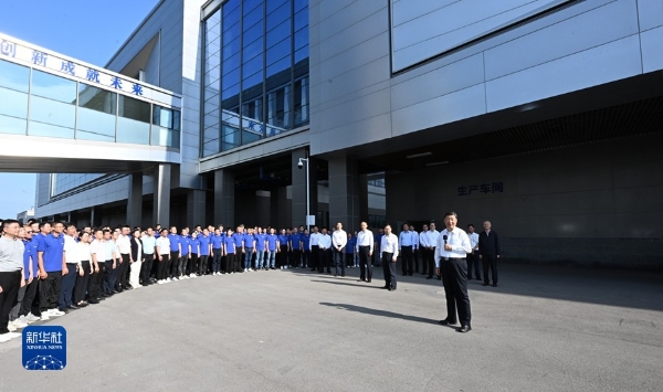 6月8日,中共中央總書(shū)記、國(guó)家主席、中央軍委主席習(xí)近平在四川考察。這是8日下午,習(xí)近平在宜賓市極米光電有限公司車(chē)間外廣場(chǎng),同企業(yè)員工們親切交流。新華社記者 李學(xué)仁 攝