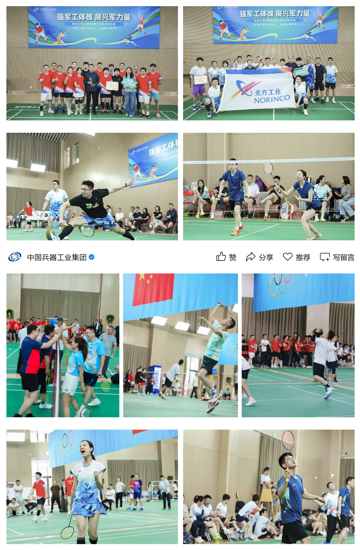 本次羽毛球團(tuán)體賽,是集團(tuán)公司深化開展群眾性體育活動,貫徹落實“健康中國”戰(zhàn)略的生動實踐,也是打造“健康兵器”的積極行動,進(jìn)一步促進(jìn)在京單位職工溝通交流、增進(jìn)感情、加強團(tuán)結(jié),激發(fā)了廣大職工的向心力凝聚力戰(zhàn)斗力。下一步,集團(tuán)公司將繼續(xù)組織開展形式多樣的文體活動,豐富職工文化生活,塑造職工健康體魄,為加快推動兵器工業(yè)高質(zhì)量發(fā)展作出新的更大貢獻(xiàn)!